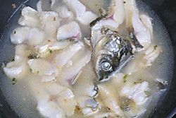 鱼排,用油煎至两面发黄,倒入热水,放入鱼头,鱼边肉,葱姜开锅后中小火熬20分钟