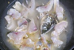 待鱼汤奶白滚开时,加入胡椒粉、绍酒、盐调味,关小火放入腌渍好的鱼片。