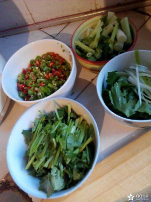 辣椒剁碎,能够剁多碎就多碎。我没有买鱼调料,那些不干净,自己炒底料还安逸些。O(∩_∩)O