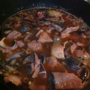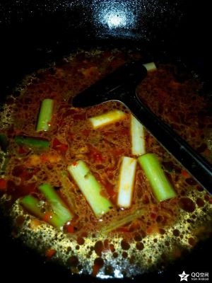 可以多放点油,油热之后,放入花椒,大蒜,姜,辣椒,翻炒,炒香。倒入适量水,放入大葱,大火烧开。