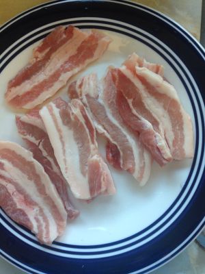 五花肉切片~我只用做两人份所以就直接买了超市的切片,大概8片肉肉吧~五花肉基本上是7瘦3肥