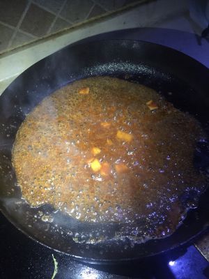 重新煸锅,加入番茄酱翻炒,随后加入水至糊状。