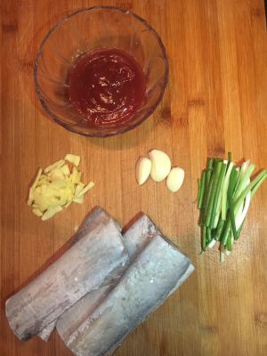 准备材料,煸锅基本材料,带鱼和番茄酱。