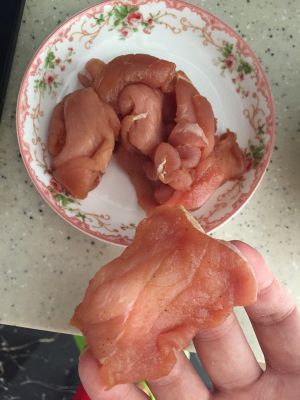 把里脊肉切小薄片 用盐、酱油、料酒 白胡椒粉腌一下