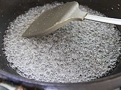 锅中油倒出去,刷干净;倒入白醋、白糖,开始熬汁