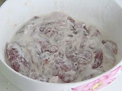 淀粉(地瓜粉)磕入一粒鸡蛋,再加入适量的清水,混合成浓稠度适宜的面糊