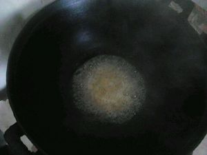 锅里留少许油加入白糖小火慢熬,用勺子慢慢搅动