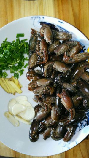 刷干净!再捞水洗一遍!装盘备用!再准备好配料!葱花!生姜丝!蒜瓣切片!