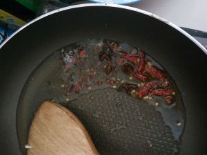 锅里放油,香料倒进去炒香