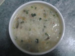 小火煲粥两小时左右再加入姜丝。盐。胡椒粉调味即可