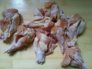 开水烧好后,将鸡肉放入锅内,煮至肉变白为止,大概5分钟。