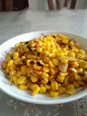 锅内放油烧热,放入玉米粒翻炒几下,放入胡萝卜丁和熟松仁,放入两小勺糖(根据个人口味决定放入糖的多少)盐适量(此菜不易过咸)继续翻炒,然后放入黄瓜丁,翻炒几下后就可以出锅装盘。