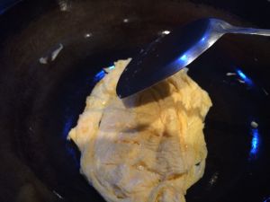 炒鸡蛋 一面熟过之后 翻面打碎 早出锅 不要老
