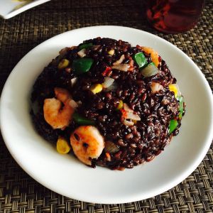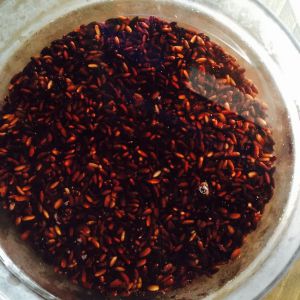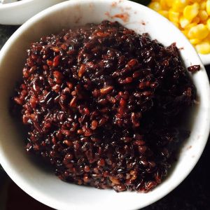 黑糯米泡水 至少3小时以上,把泡好的米放电饭锅按平时煮饭的水量,煮熟。