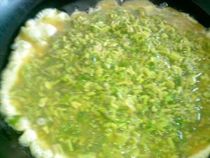 锅里起油,等锅烧热后倒入香椿鸡蛋。