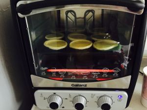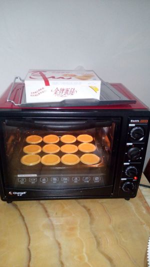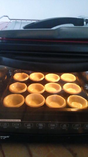 第一次做可以在旁边观察 蛋挞会先膨胀起来 这是正常现象 大约25分钟(每台机器都不一样 仅供参考) 就可以了 朋友们记住出锅前8分钟要观察蛋挞的颜色 最后蛋挞的成色是由自己决定的