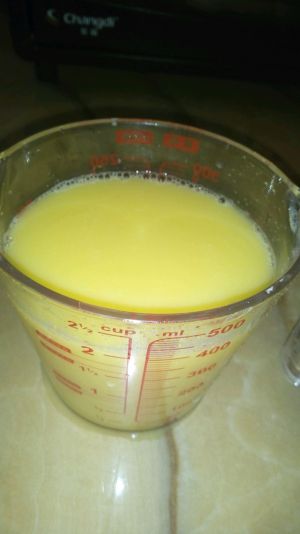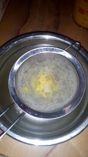 这就是搅拌好的蛋挞水了,有没有看到上面还有很多粗糙的杂物,需要过筛哦