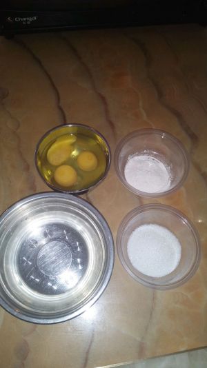把所有原料倒入一个大盆里 接着使用电动打蛋机打只发泡就可以了或者细砂糖完全混合了就可以了