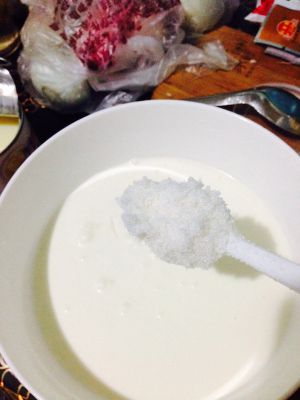 将淡奶油加入牛奶中,然后加入两勺糖!
