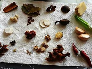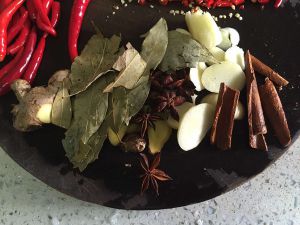 调料,种类比较多辣椒花椒多放些,桂皮,八角,花椒,肉蔻,莨姜,甘草,沙仁,白芷,小茴香,草果,香叶,橘埂。葱姜蒜就不说了