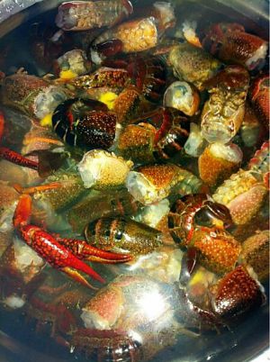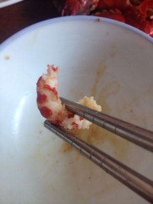 因为这次虾子不大,钳子很小,就没留,里面的黄。