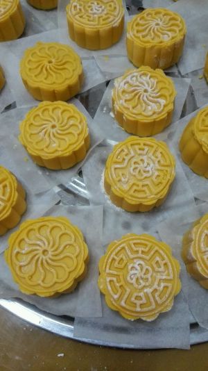 把花生碾碎,然后和椰蓉,白糖,芝麻拌匀,可以试吃一口,根据自己喜欢的口味增减白糖。把面团分成约40克一个的小面团,包入椰蓉馅,虎口收口,用双手搓圆,顶部沾上熟糯米粉,用50克的月饼模压出花纹放在油纸上。