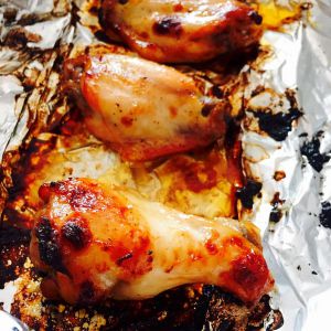 烤箱预热200度,鸡翅放到烤架上,刷一层蜂蜜,放入烤箱30分钟。