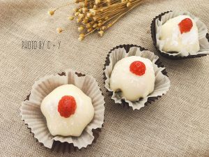 雪梅娘表面可以撒少许熟的雪梅娘粉装饰,也可以不撒。