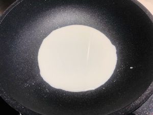 将淡奶油、牛奶和炼奶、白糖放在小锅里,用小火加热,边加热边搅拌,至白糖溶化离火,放凉。