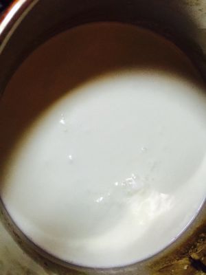 牛奶、淡奶油、炼乳、砂糖32g,搅拌均匀可以稍微加热、也可以不加热。