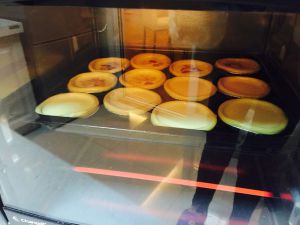 烤箱上下火210度预热5分钟!放入蛋挞,210度烤25~30分钟,最后5到10分钟的时候注意观察一下,上色上的差不多的话就可以出炉了