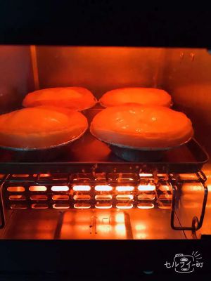 烤箱200度预热8分钟,放进蛋挞上下火中下层烤20分钟