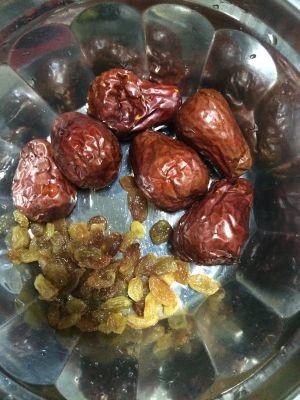 依次往塔皮中放入葡萄干。到入混合好的液体 七分满。 烤箱200度预热5分钟。上下火中层 180度 25分钟 (这种成品塔皮就是比较方便。用来应急。以后有时间上传 手工塔皮 蛋挞 菜谱哈 )