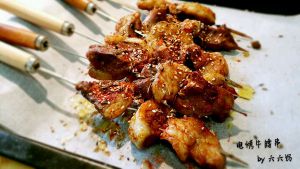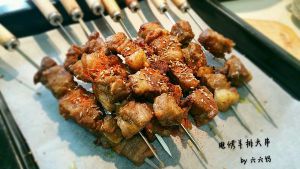 烤熟的羊排大串,根据个人喜好,撒上孜然芝麻辣椒粉。味道更加。