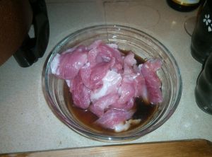 猪肉洗净后切条,放入生抽,料酒,姜,淀粉腌好