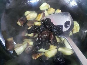 茄子不出锅,不放油,放入葱蒜木耳翻炒