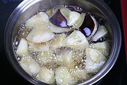 锅中加入油,把土豆片放入锅中炸熟,在倒入茄子