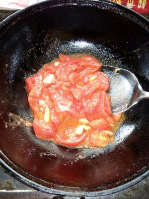西红柿两个,去皮,切碎。大蒜几瓣拍碎了。小葱切碎。