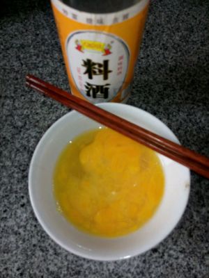 鸡蛋同一方向打匀,加少许清水鸡蛋会嫩一些