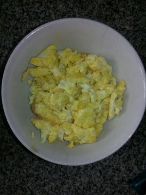 起油锅,油热后鸡蛋入锅翻炒凝固后盛出