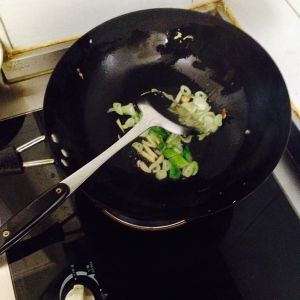 青蒜苗切末,加入锅内,翻炒几下,即可出锅。