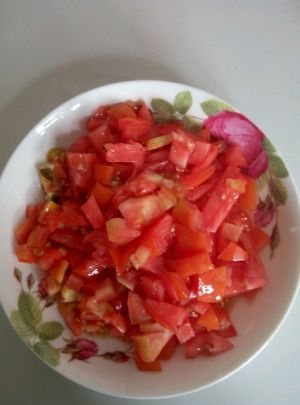 西红柿洗净,切成小丁,