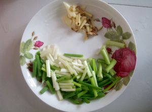 蒜,姜切小粒,葱切小段(我用的是小白葱,香一点)