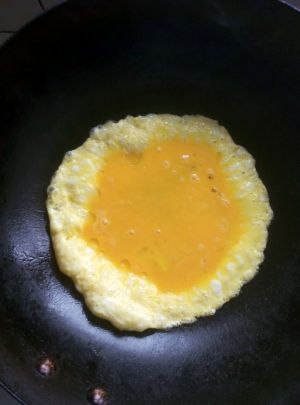 锅中热油倒入蛋液煎成蛋饼,再用锅铲弄成小块(蛋液可以分两次煎 这样份量会多点)