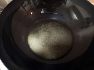 放白糖,炒糖色,糖的量要多些。等变成棕色,冒小泡就可以,炒糖色千万不要炒糊,否则会苦