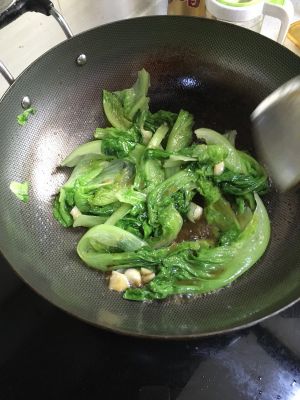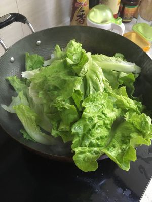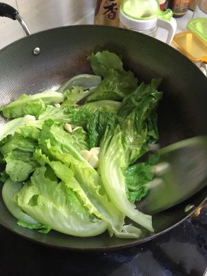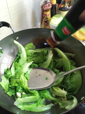 炒锅放少许油下生菜炒软,放蚝油翻炒均匀
