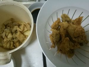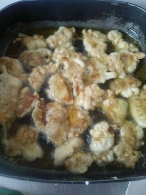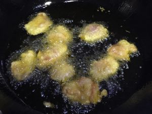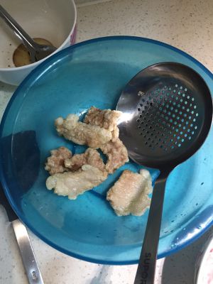 开始炸(油温九成热度就可以肉不用熟透因为最后还要回锅炸一遍)