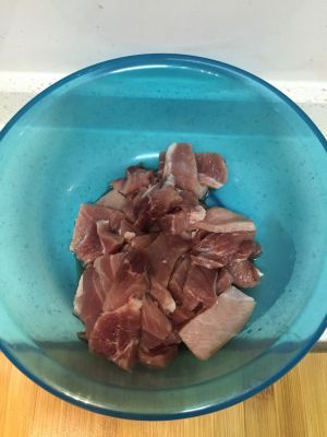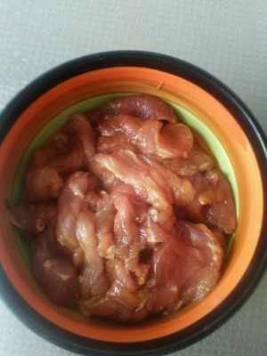 腌肉,(少许的盐,酱油 醋 放这些这是为了提味不然肉里会没味)