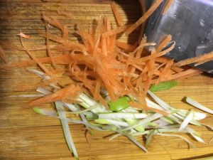 胡萝卜,小葱切丝,备用。