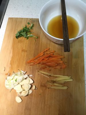葱、姜、香菜、切丝备用。